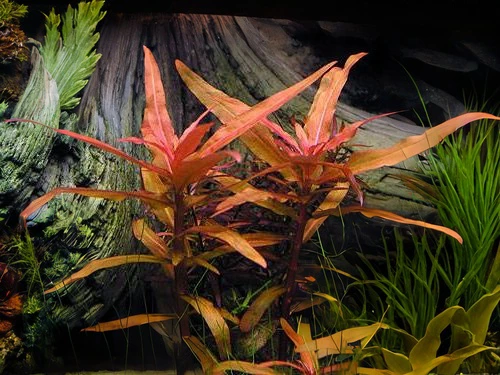 Ammannia crassicaulis, eine Moorwurz, erreicht Höhen von bis zu 50 cm und stammt aus den tropischen Sümpfen, Reisfeldern und Bachläufen Afrikas und Madagaskars. Sie wird oft aufgrund ihrer ähnlichen Erscheinung mit Ammannia gracilis verwechselt, jedoch zeigt A. crassicaulis in Aquarien oft weniger leuchtende Rottonungen und eine gelbgrüne bis hellrote Färbung.