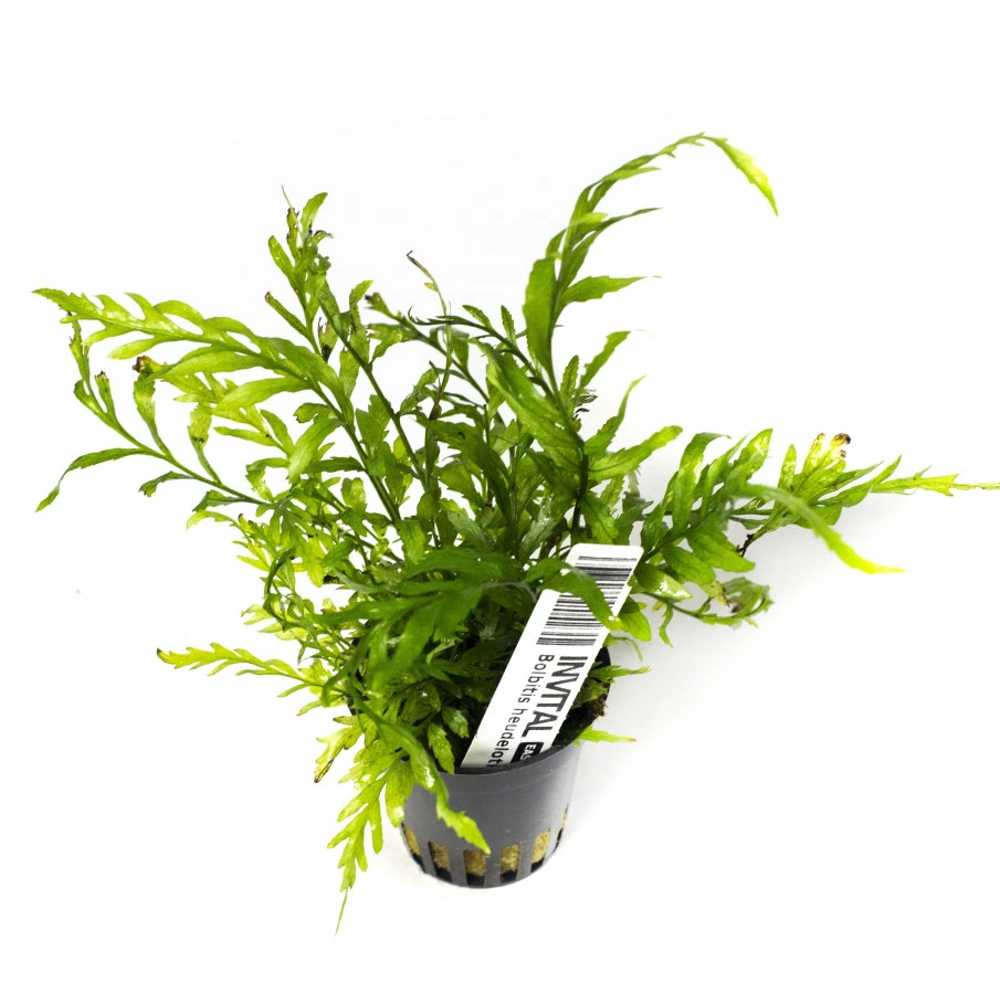 Die Bolbitis heudelotii (Africanische Wasserfarn) ist ursprünglich aus der tropischen Afrika stammend, wo sie auf Felsen oder Treibholz mit ihren Wurzeln in schnell fließenden Flüssen und Bächen wächst. Das Pflanzen hat einen kriechenden Rhizom, das einzelne bis doppelte, transparente Blätter eines Glasgrünen Farbtons bei Untertauchung unterstützt und einzelne, matte grüne Blätter mit einer härteren Textur bei Ausbeinung. Es handelt sich um eine langsam wachsende Pflanze, die am besten entwickelt, wenn sie an Felsen oder Treibholz angebracht wird und einen starken Wasserlauf und CO2-Zusatz für den optimalen Wuchs benötigt. Weiches, leicht saures Wasser ist ideal. Die Verbreitung erfolgt durch Trennung des Rhizoms in Stücke mit mindestens drei Blättern. Die ein- bis doppelfältigen, dunkelgrünen, transparenten Blätter machen diese Pflanze zu einer schönen Ergänzung für die meisten Aquarien-Anordnungen, insbesondere im Mittelfeld eines Aquariums.