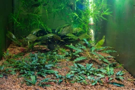 Cryptocoryne palawanensis is a plant native to the Philippines. It has been known for many years and has been mistaken for Cryptocoryne pygmaea Merrill (1919). C. palawanensis occurs in rivers and streams with hard water, both emersed on banks and submerged in deeper water. The plant grows small (5-8 cm) when emersed and up to 25 cm when submerged. Emersed leaves are lanceolate, while submerged leaves are linear with wavy edges and brown-green tones.