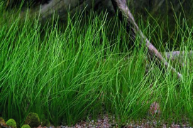 Eleocharis acicularis, also known as dwarf hairgrass or spikerush, is widely distributed globally. It can be found on pond edges and in shallow water in Central Europe. As an aquarium plant, it has been well-known for a long time and is often sold as a pond plant. The submersed form of this plant features thin, upright leaves with a medium green color, reaching lengths of 10-20 cm.