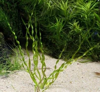 Helanthium bolivianum 'Vesuvius' is also known as Echinodorus 'Vesuvius'. It is the first cultivated variety of runner-forming "grasslike" sword plants. Helanthium is a distinct genus that includes H. bolivianum 'Vesuvius'. This cultivar was selected from mother plants of Helanthium bolivianum "Angustifolius" (= Echinodorus angustifolius) by Eu Kwee Hwang at Oriental Aquarium in Singapore. Stoffels International BV introduced the new cultivar during Interzoo 2006.