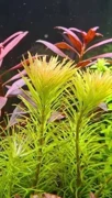 Ludwigia inclinata var. verticillata "Araguaia" is a local variant of L. inclinata var. verticillata that originates from the Rio Araguaia in eastern Brazil. It resembles L. inclinata var. verticillata "Cuba" but has predominantly green tones. The plant has narrower underwater leaves and a lower tendency to form lateral shoots compared to "Cuba".