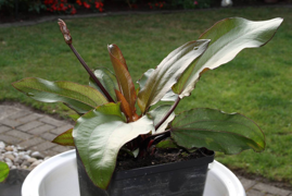 L'Echinodorus 'Regine Hildebrandt' a été créé en croisant Echinodorus 'Ozelot' avec E. uruguayensis "horemanii rot". Cette variété est une espèce d'Echinodorus plus petite, pouvant atteindre 15-20 cm de haut, ce qui la rend adaptée aux petits aquariums ou aux zones avant-plan de grands aquariens. Les feuilles immergées ont un coloris rouge vine intense sur le dessus, sont étroites-ovales en forme avec un court pédoncule, mesurant jusqu'à 10 cm de long et 5 cm de large. Cette variété nécessite beaucoup de lumière et de nutriments et croît lentement.